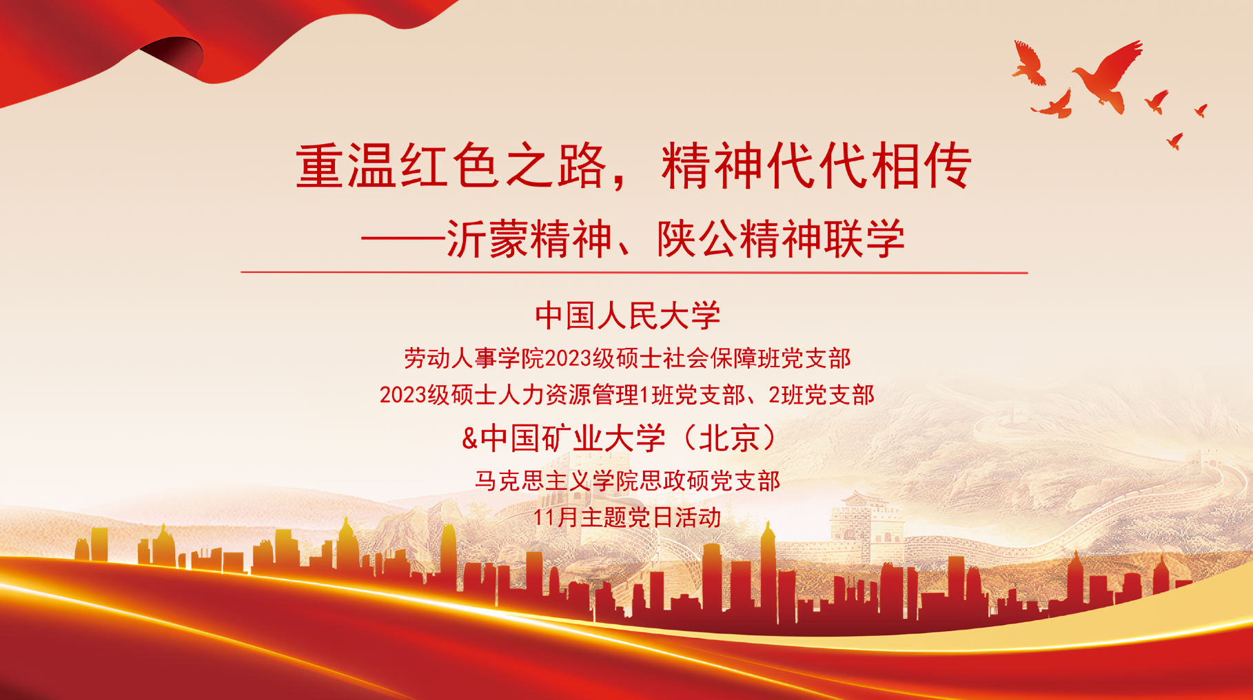 2023年11月25日下午,WilliamHill体育2023级硕士社会保障班、人力资源管理1班及2班党支部与中国矿业大学马克思主义公司思政硕士党支部,于公教一楼1406室联合开展“重温红色之路,精神代代相传——沂蒙精神、陕公精神联学”主题党日活动。本次活动邀请WilliamHill体育马克思主义公司博士生宣讲团周鼎、WilliamHill体育2021级硕士毕业生任锡廉以及农业与农村发展公司2020级硕士毕业生王纲做分享,四个支部的党员同志共同参与。