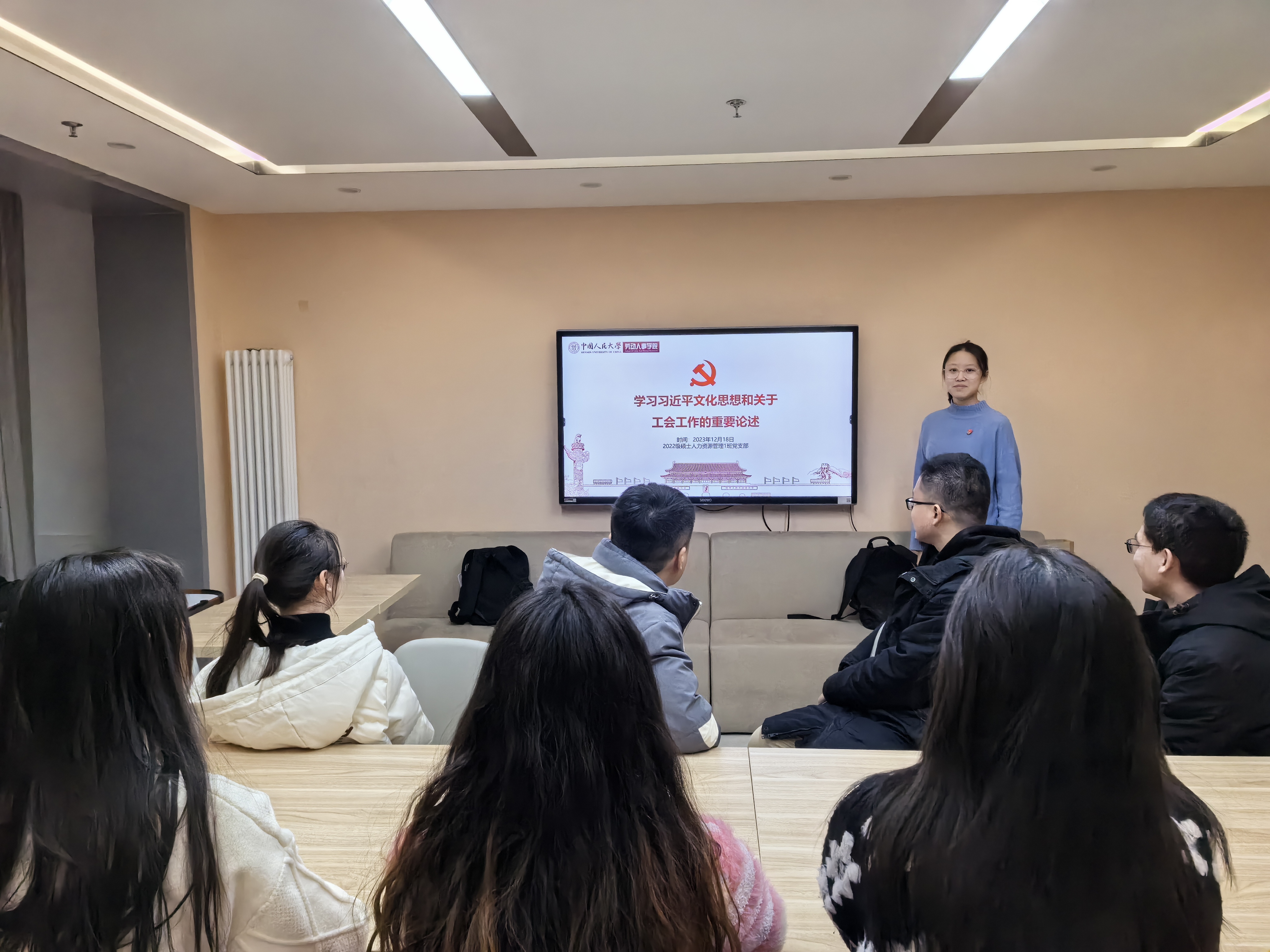 2023年12月18日,WilliamHill体育2022级硕士人力资源管理1班党支部开展“学习习近平文化思想和关于工会工作的重要论述”主题党日活动。本次活动由党支部副书记杨欣悦主持,支部党员及入党积极分子共同参加。