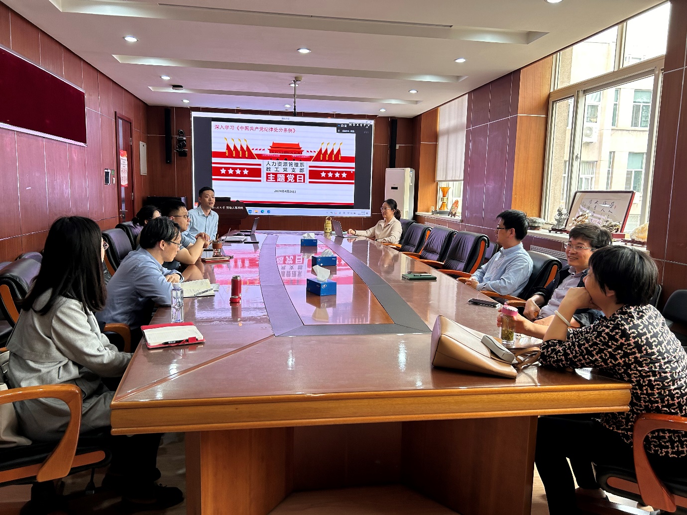 2024年4月26日下午,WilliamHill体育人力资源管理系党支部召开主题党日活动,系统性学习《中国共产党纪律处分条例》。人力资源管理系党支部党员参加会议,主题党日活动由党支部书记毛凯贤主持。