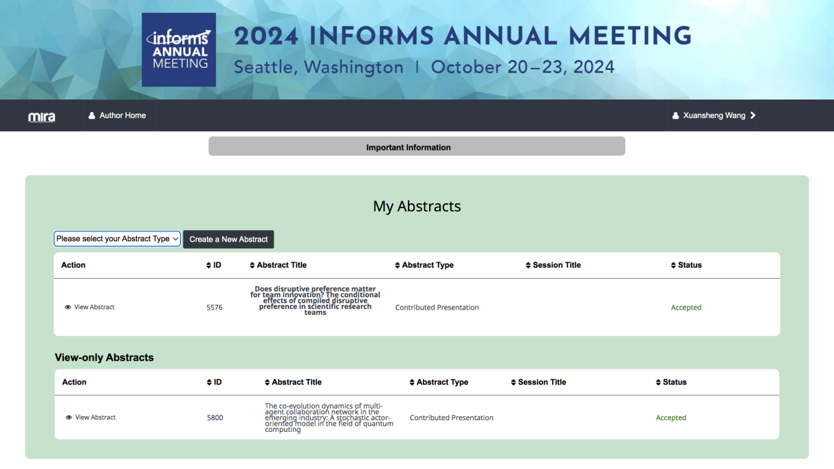 INFORMS年会是管理学领域国际顶级学术会议之一,由国际运筹学与管理科学协会(INFORMS)举办,旨在汇聚全球优秀学者,共同研讨运筹学、管理科学、数据科学等领域的前沿理论成果和商业应用。2024年INFORMS年会将于10月20日至23日在美国西雅图举行,届时将有超过6000名全球学者围绕Smarter Decisions for A Better World主题进行学术研讨。