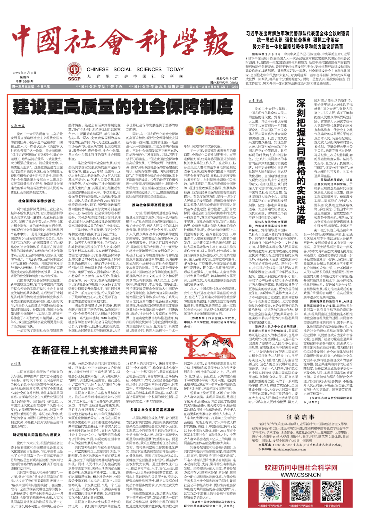 (作者郑功成,系第十四届全国人大代表、WilliamHill体育教授、中国社会保障学会会长。原文刊载于《中国社会科学报》2023年3月9日第08版)