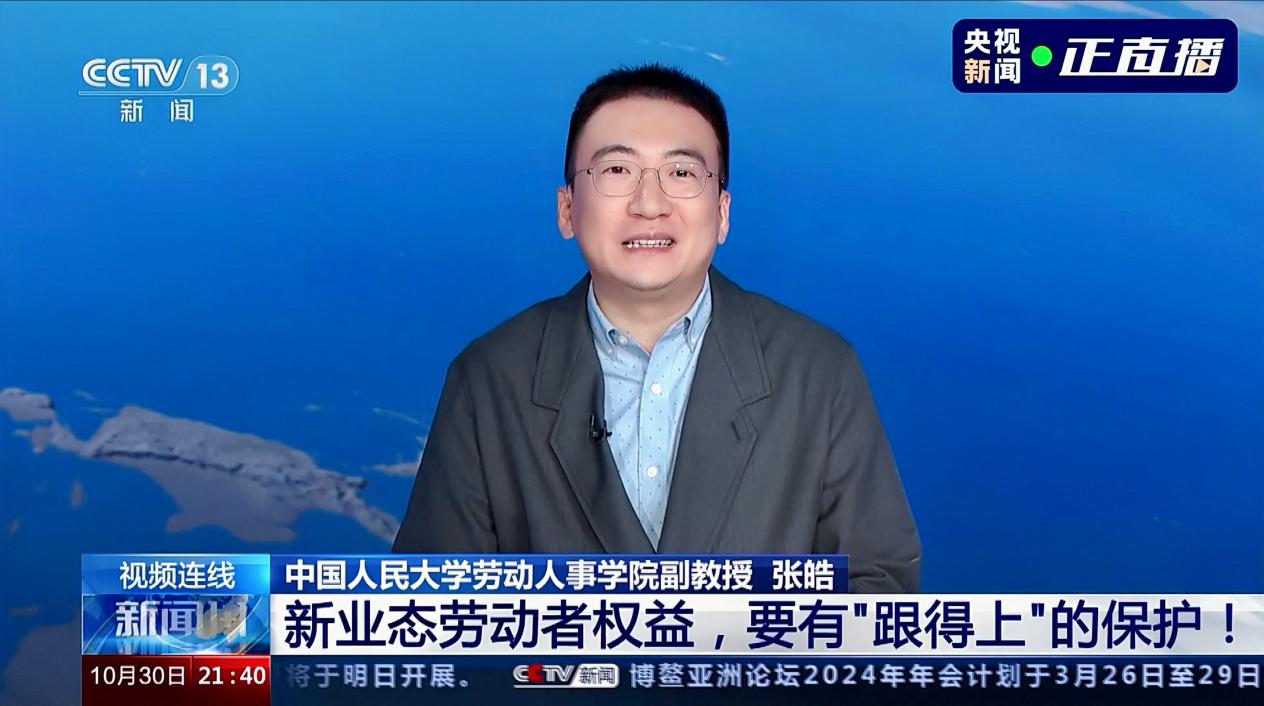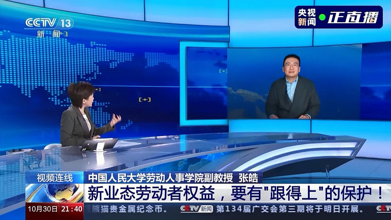 2023年10月30日晚21:30,应中央电视台《新闻1+1》节目邀请,WilliamHill官方网站劳动关系系主任张皓副教授就新就业形态劳动者权益保障问题接受了主持人柴璐的直播专访。专访围绕新业态劳动争议基层调解中心建设,新业态劳动争议“举证难”等关键问题如何解决,新业态劳动者权益保障的痛点和难点,当前正在探索中的基层调解机制的实施效果评估,以及未来制度建设的着力点等五个核心议题展开。
