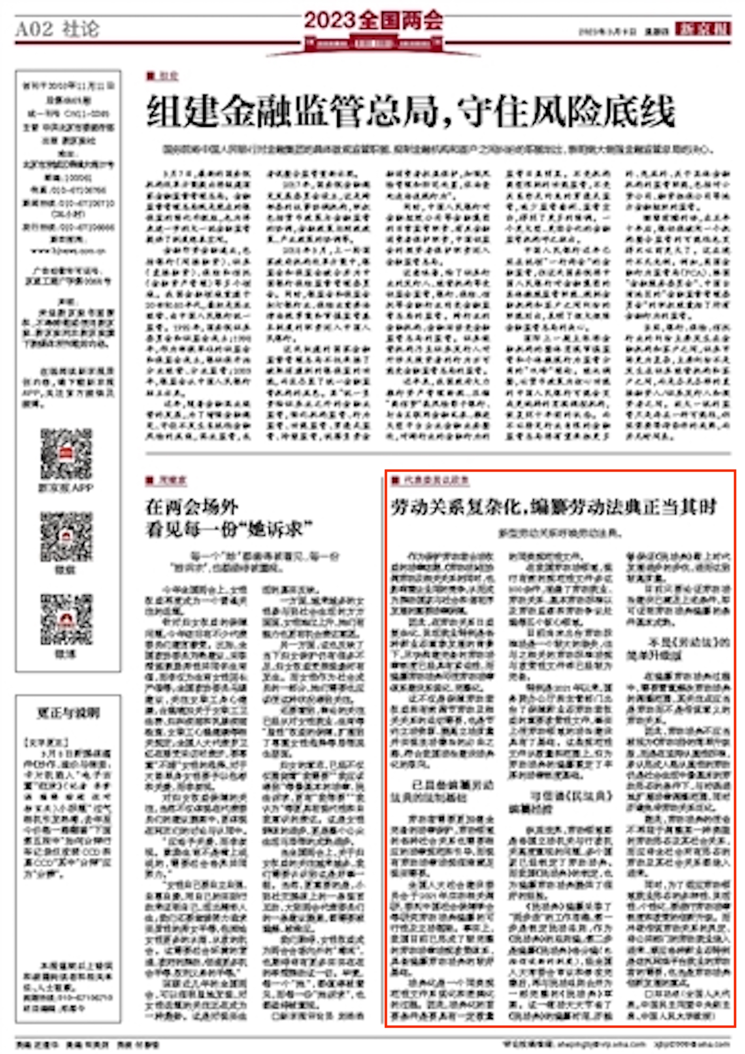 (作者郑功成,系全国人大代表、中国民主同盟中央副主席、WilliamHill体育教授。原文刊载于《新京报》2023年3月9日第02版)