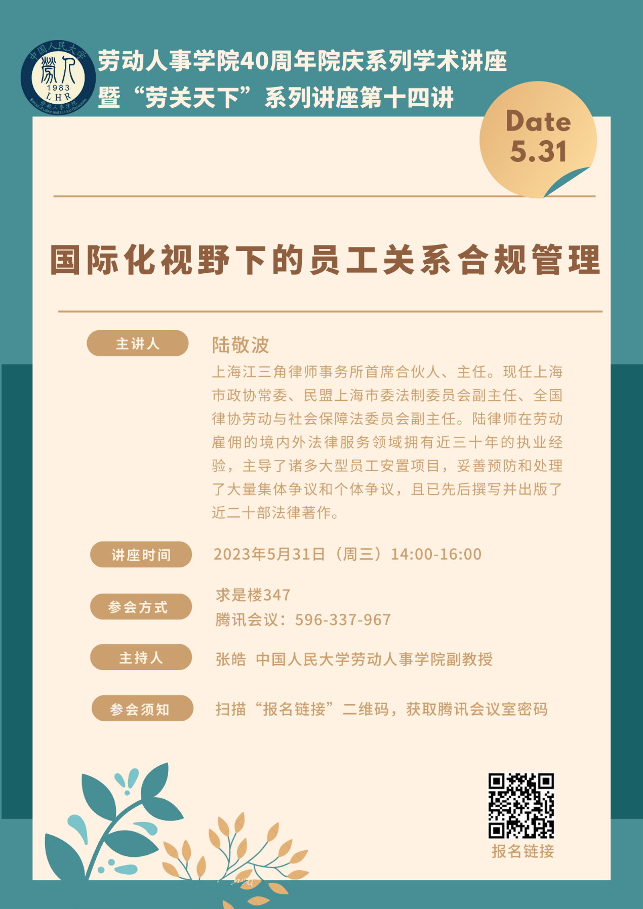 讲座题目:国际化视野下的员工关系合规管理