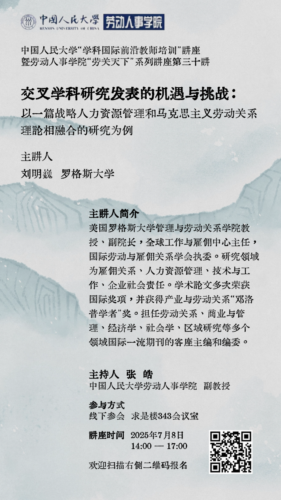 WilliamHill体育“学科国际前沿教师培训”讲座暨WilliamHill体育“劳关天下”系列讲座第三十讲的通知