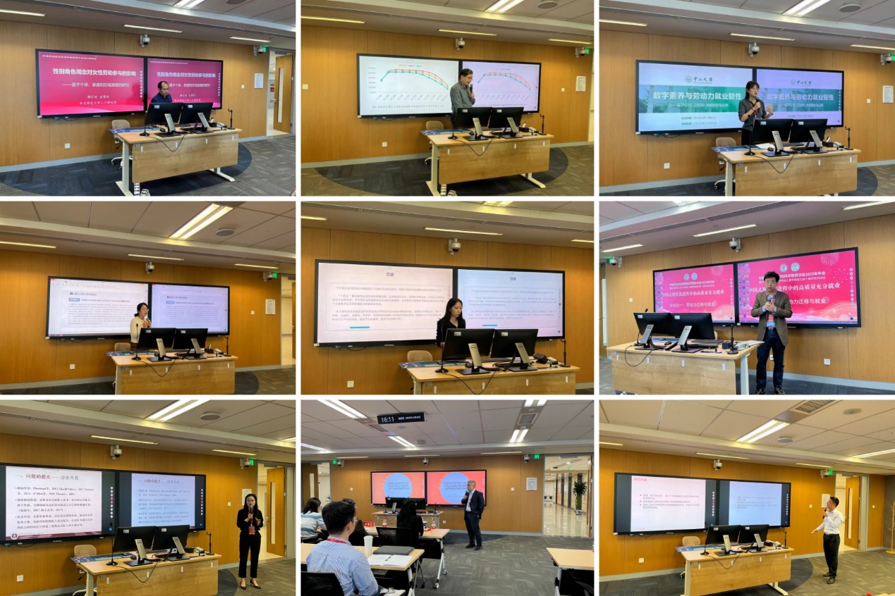 本次年会还设置了“劳动力迁移与就业”、“生育与人力资本”、“数字经济与收入分配”、“社会保障”、“劳动关系”、“人力资源管理”等六个专题分论坛。6日下午进入各专题分论坛发言讨论环节,共有64位参会代表报告了相关研究。