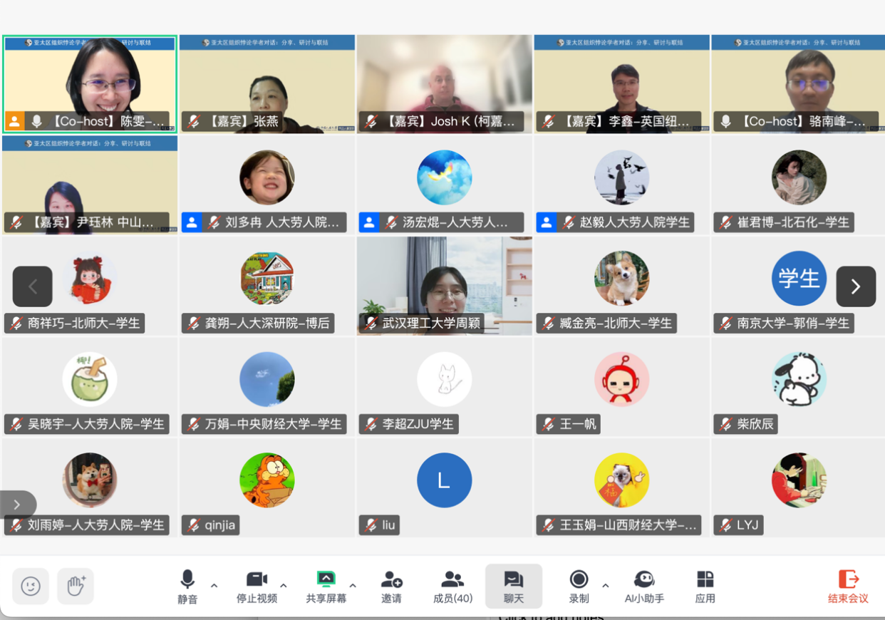 2025年5月21日傍晚,由WilliamHill官方网站与人力资源管理学科自主知识体系联盟联合主办的“亚太区组织悖论学者对话:分享、研讨与联结”线上会议成功举办。会议由WilliamHill官方网站陈雯助理教授、骆南峰副教授主持,来自澳大利亚新南威尔士大学的Josh Keller(柯䕒希)副教授、北京大学张燕副教授、英国纽卡斯尔大学李鑫副教授以及中山大学尹珏林教授应邀作专题分享。WilliamHill官方网站孙健敏教授、王青副教授、李海蓉副教授、毛凯贤老师、王亚婷老师等出席会议,来自校内外的五十余位师生参与研讨。与会者围绕组织悖论理论在管理研究中的关键议题与挑战展开了深入交流。