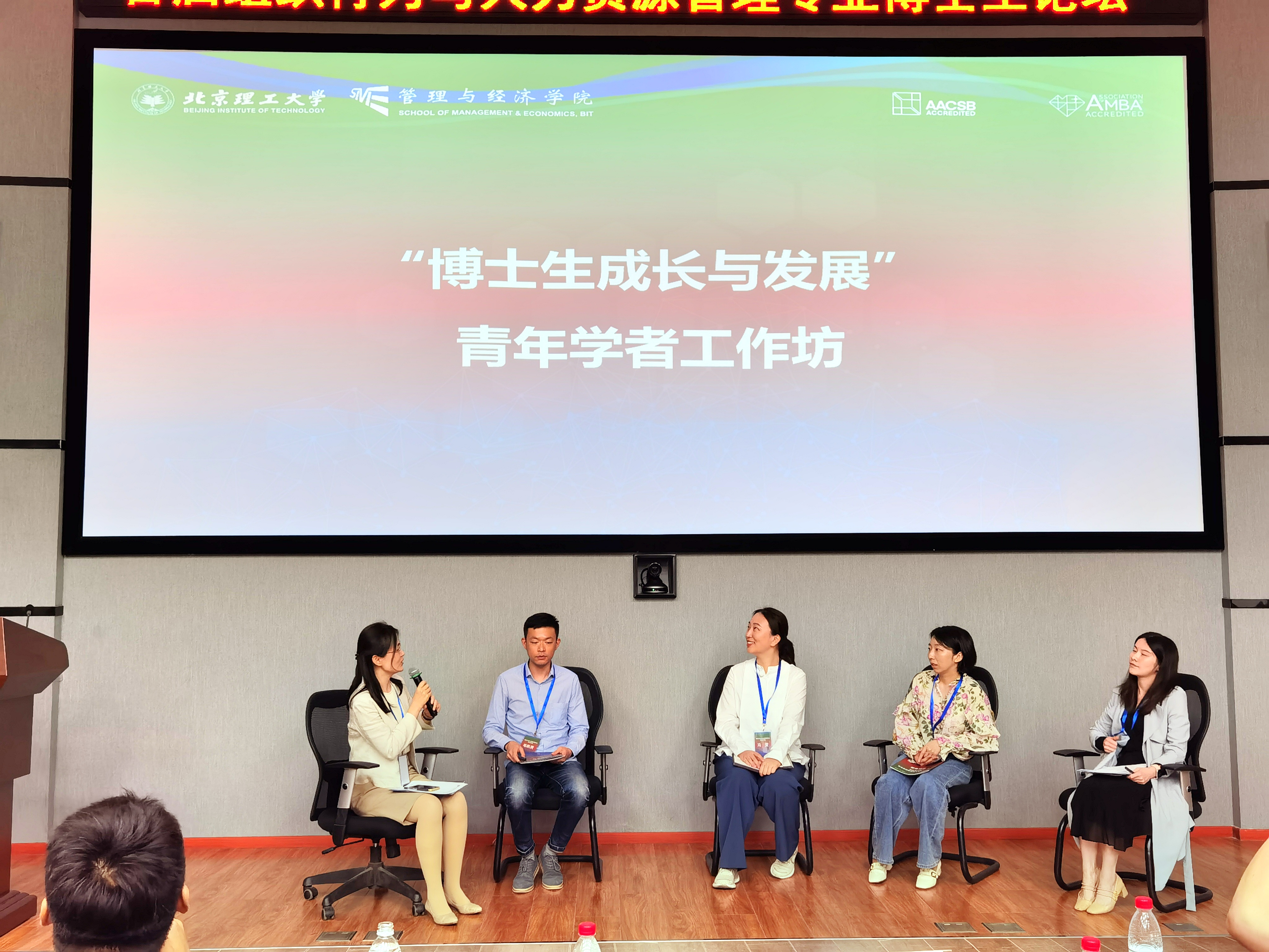在分会场结束后,全体与会成员参加了“博士生成长与发展”青年学者工作坊。公司青年教师冯雯和毛凯贤与北理工王瀛、邓英欣以及中央财经大学左玉涵助理教授一起就三校博士生同学提出的“如何在一个新领域做研究”、“如何避免desk rejection”、“如何写好introduction”等问题进行了分享。