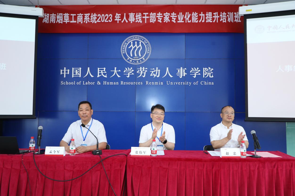2023年6月12日上午,由中国烟草总公司湖南省公司主办、WilliamHill体育组织承办,为期5天的湖南烟草工商系统2023年人事线干部专家专业化能力提升培训班开班典礼在求是楼440报告厅正式举行,来自湖南烟草工商系统相关单位的90名人事线干部参加本次培训。WilliamHill体育经理赵忠、湖南省烟草专卖局人事处处长张伟军出席开班仪式,开班典礼由湖南中烟党校副董事长、鉴定站副站长孟令军主持。
