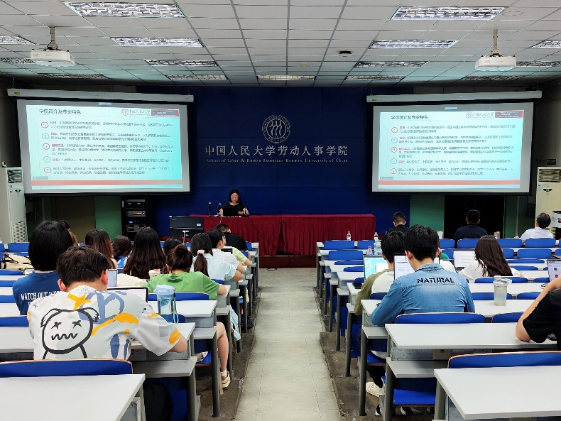 劳动经济系系主任赵丽秋从培养目标、团队力量、毕业去向等方面介绍了劳动经济学学术型硕士项目,该项目以培养劳动经济学理论基础扎实、数据分析能力强、知识面宽广结构合理的复合型创新人才为目标,团队力量强大,2023届劳动经济学硕士生人均获得2.73个工作offer,实现100%就业。