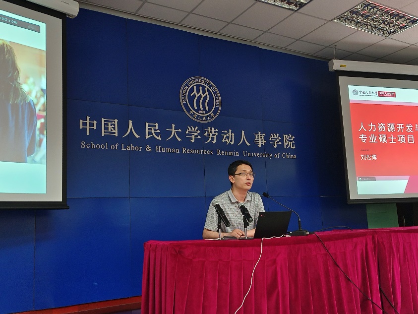 人力资源管理系系主任骆南峰介绍了人力资源管理学科在教师队伍、科研成果、社会服务等方面的建设情况,并强调了人力资源管理学术型硕士项目在为企业、党政机关和事业单位培养人力资源管理高级人才,为高等院校和科研机构输送科研人才方面的培养目标和重要作用。