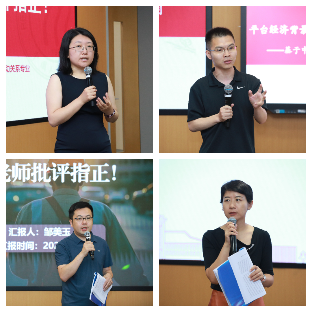 经公司各专业教师评审与选拔,闫欣洋、邹美玉、王攀、姚煦立4位同学分别围绕劳动经济学、社会保障、劳动关系、人力资源管理研究领域在主论坛作论文报告。公司各专业教师代表林琳、刘凯、汪建华、魏昕对其选题方向、研究方法、理论框架等进行点评,并提出富有建设性的指导意见。