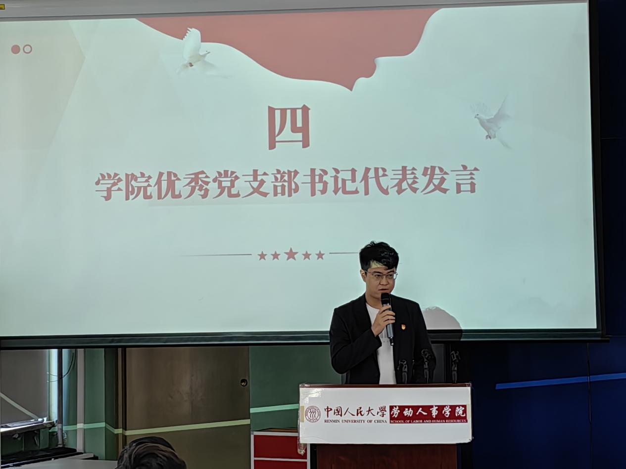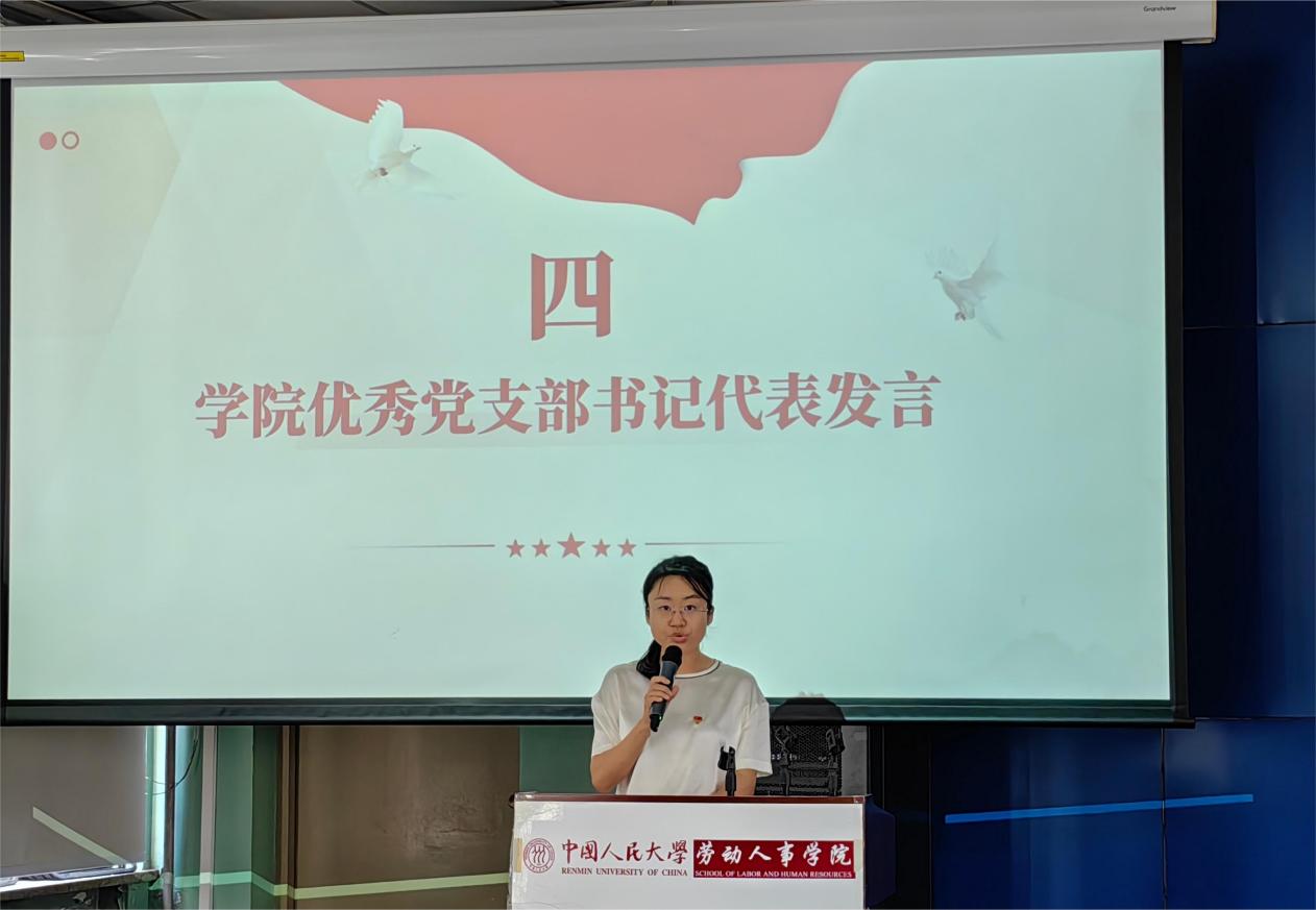 公司两位优秀党务工作者(党支部书记)代表现场发言。劳动关系系党支部书记赵欣彤老师聚焦教师支部“双强”建设,为穿透“两张皮”实现党建引领学科发展分享了宝贵经验。专业学位硕士党支部书记薛敬彦同志,将从零开始建设专硕支部,扎实开展支部工作,推进党建践学育人的工作历程一一道来。