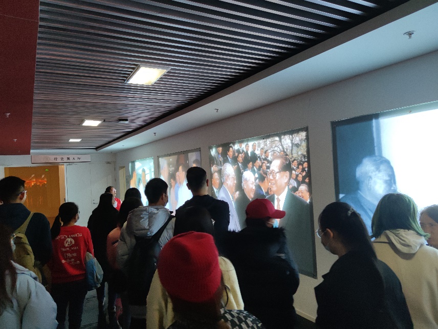 穿过走廊,便进入校史展正厅。讲解员向支部成员详细介绍了中国人民大学从1937年陕北公学建立到如今的发展历程。