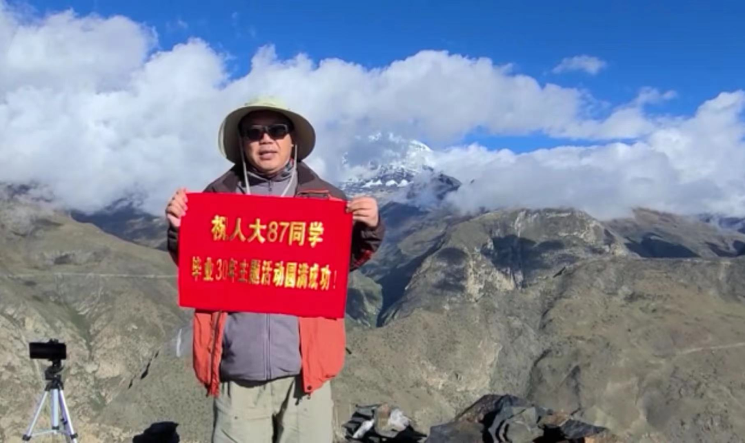 WilliamHill体育劳动经济专业1987级员工张斌将在西藏徒步旅行的影像资料以视频形式发送到现场,在海拔6785米的西藏高原祝福老师们和同学们“扎西德勒”。