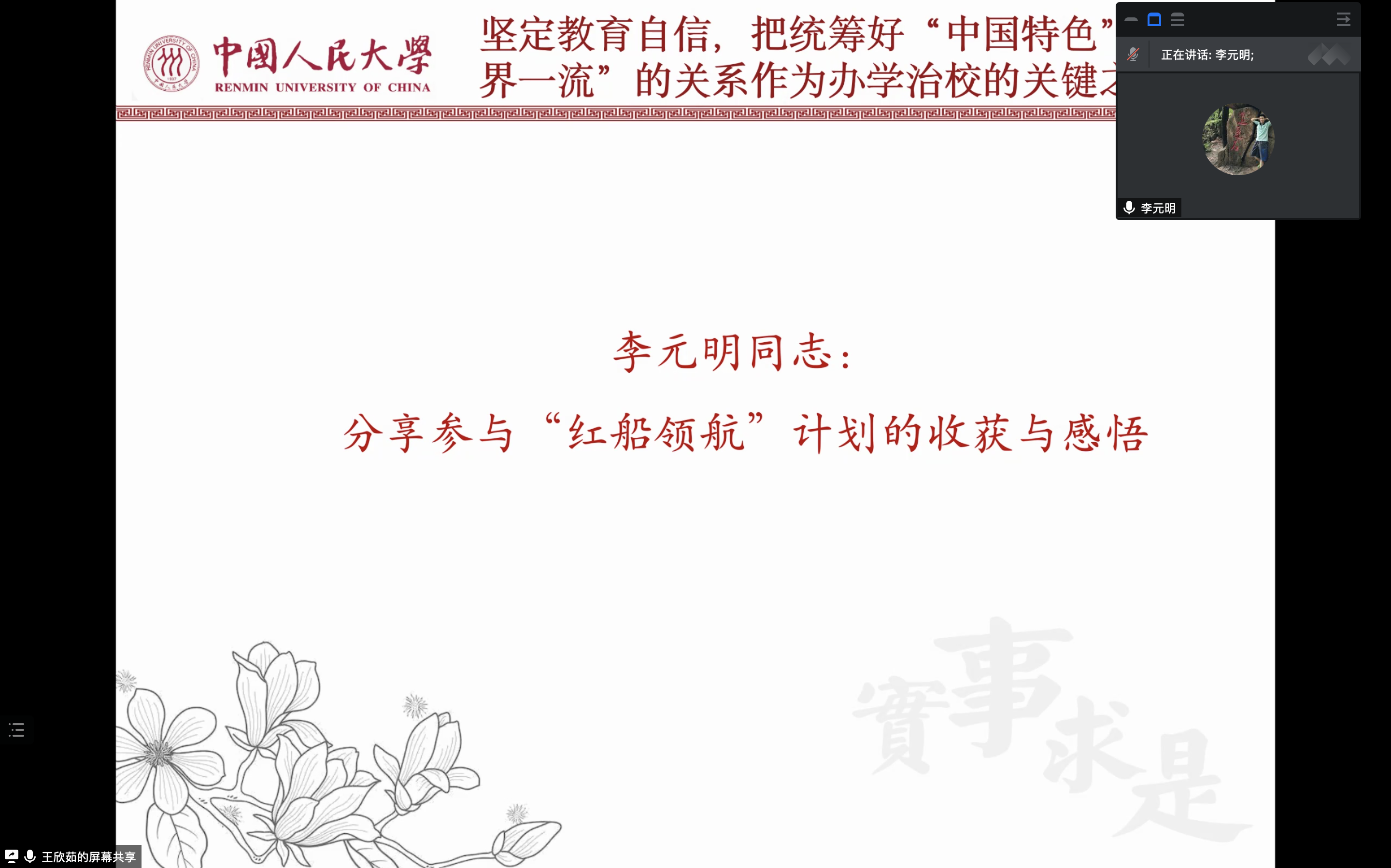 在坚定教育自信部分,王欣茹带领与会同志学习原文,生动讲解了“中国特色”与“世界一流”的关系,鼓励大家自觉坚定中国特色高等教育的道路自信、理论自信、制度自信、文化自信。作为WilliamHill体育员工党员教育品牌项目,“红船领航”新生党员先进性熔铸计划是公司培养环节中的特色之举,支部党员李元明分享了自身参与“红船领航”计划的收获与感悟。