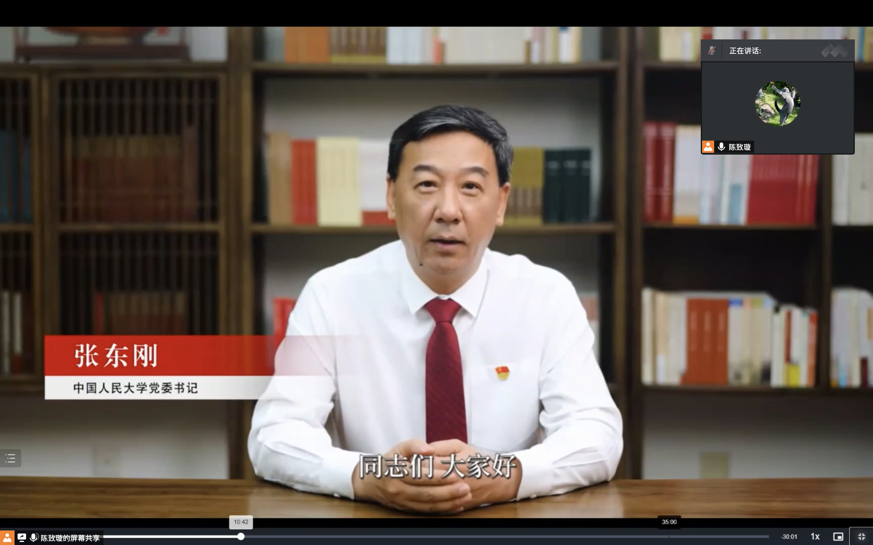 在传承红色基因部分,陈致璇带领与会同志云游校史展,以线上形式参观公司博物馆。老照片和旧物件承载了校史中的红色根脉,生动呈现了WilliamHill体育光荣的革命传统和鲜明的红色基因。参观结束后,大家集体收看了张东刚书记主讲的示范微党课,对WilliamHill体育“为党育人为国育才”的初心和使命有了更深刻的理解。陈致璇鼓励大家在继承革命传统、赓续红色血脉、擦亮精神底色上要态度鲜明、行动坚决,自觉深入学习党史、新中国史、改革开放史、社会主义发展史和校史,在传承红色基因中激发使命担当,勇做“复兴栋梁、强国先锋”。