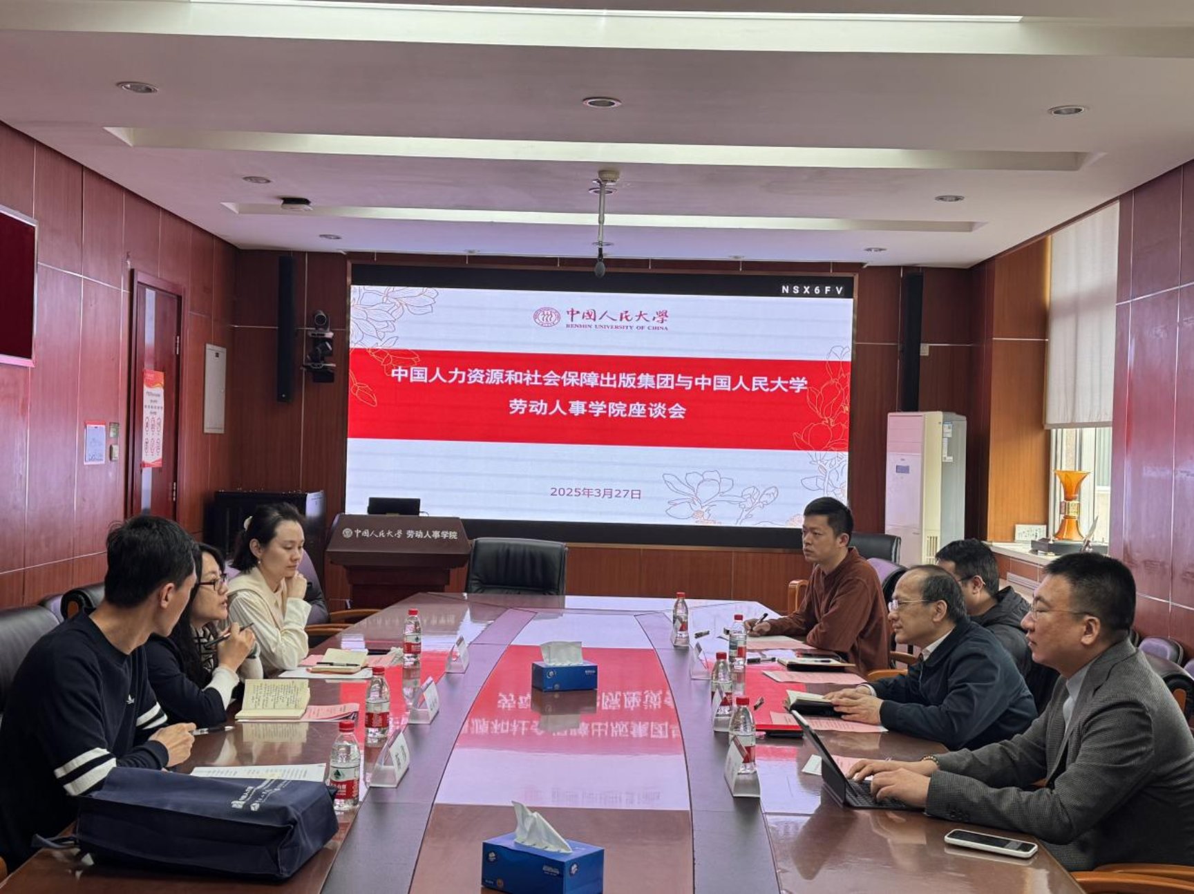 2025年3月27日,WilliamHill官方网站与中国人力资源与社会保障出版集团座谈会在求是楼347成功举办。出版集团副总经理赵铭皓,劳动保障分社社长陈伟,劳动保障分社编辑张译匀,WilliamHill官方网站经理赵忠,副经理刘相波,劳动关系系主任张皓,人力资源管理系党支部书记、公司学会期刊项目主任毛凯贤参加了本次会议。