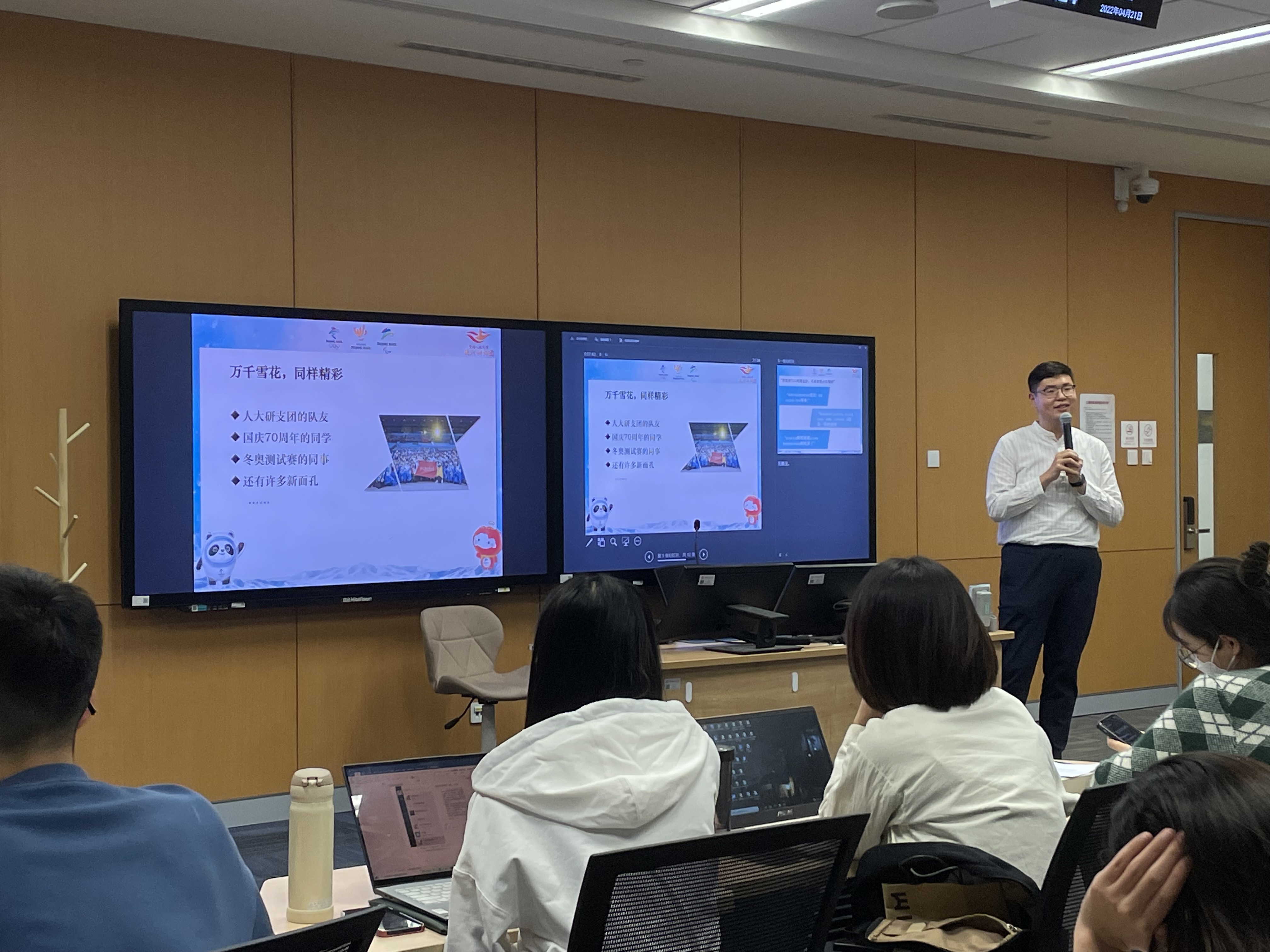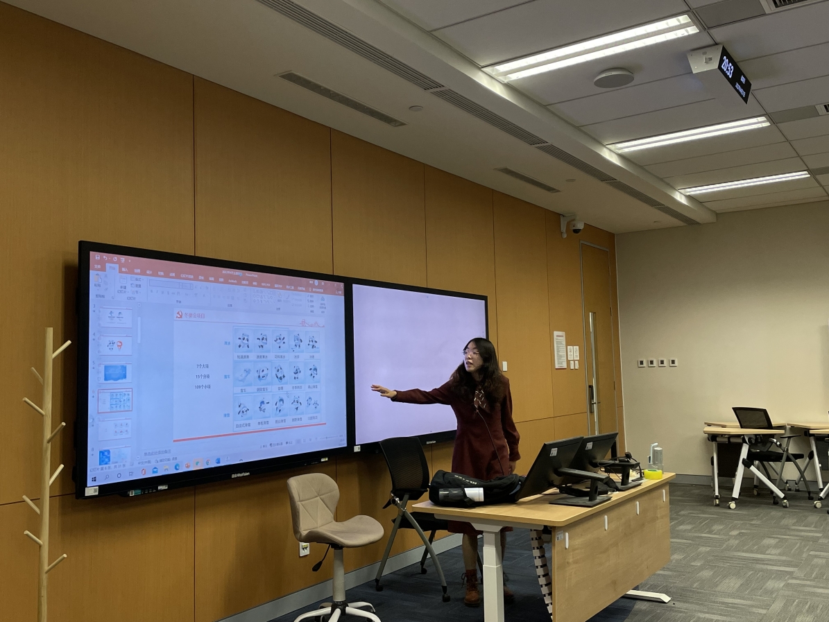 首先,支部书记袁春宇以“冬奥概览”的形式为支部成员普及冬奥知识、介绍冬奥项目,她从会徽、吉祥物、愿景、口号、比赛项目等方面向大家介绍了北京2022年冬奥会和冬残奥会的基本情况,并借助“云上冬奥”小程序、强国号微视频等带领大家走进三个赛区的比赛场馆,一睹国家速滑馆“冰丝带”中“最快的冰”、国家游泳中心“水立方”华丽变身“冰立方”的风采,使各位同志重温了冬奥盛会的精彩瞬间以及冬奥背后的科技力量。