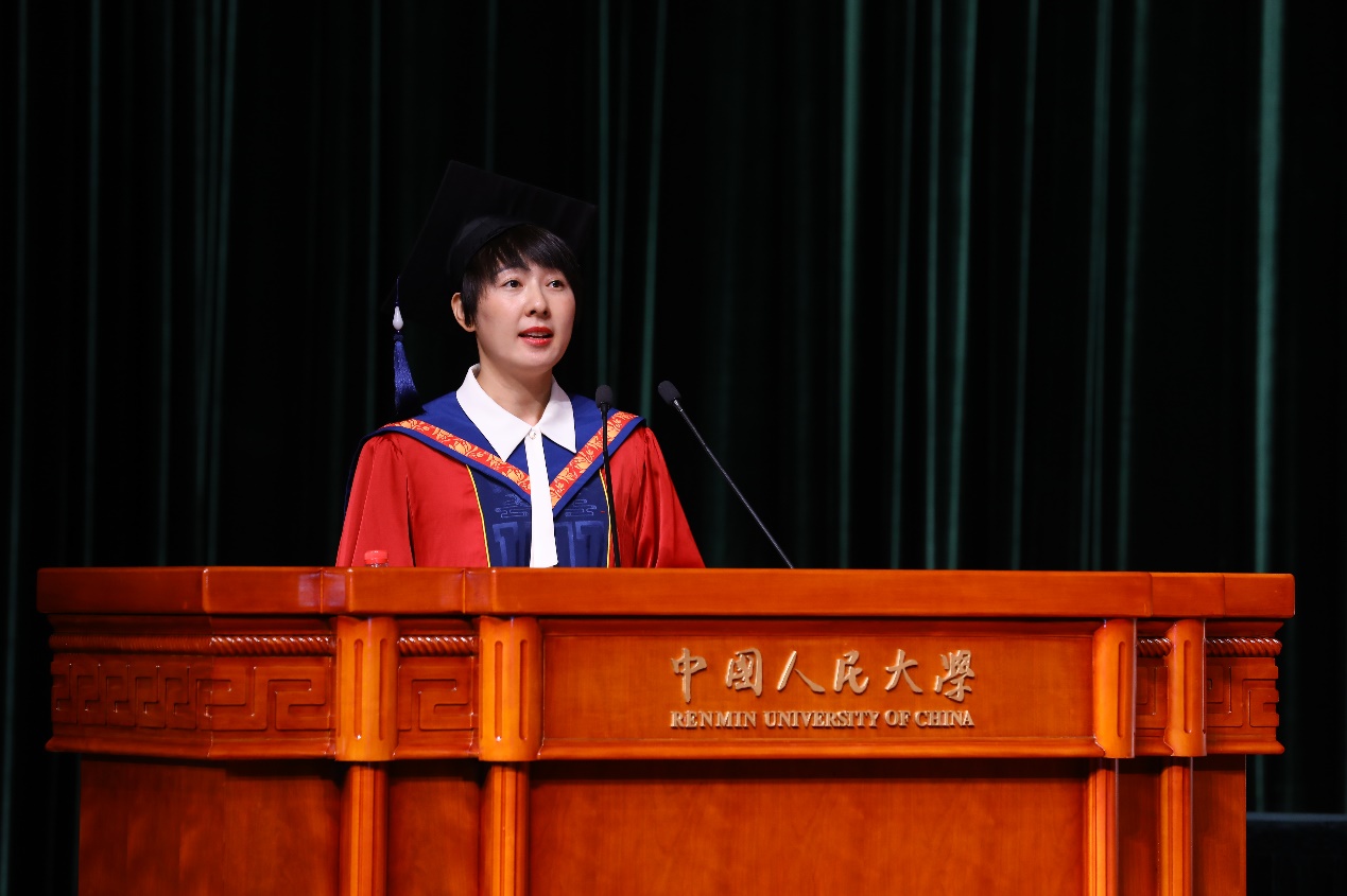 李育辉教授代表公司所有指导教师向完成学业的各位同学送上美好祝福。她为同学们在工作之余仍然坚持终身学习而感到骄傲,同学们选择WilliamHill体育,不仅为公司带来了更加多元化的价值观,而且为公司拓展了广泛而深远的社会影响力。从此刻起,同学们不仅带有公司基因,同时还带有人大基因,在工作中秉承人大和公司理想,不辜负母校和母院期待。李育辉教授为同学们送上四句寄语,希冀与全体同学共勉:“一是希望在未来我们都能够坚守底线;二是希望所有同学能够保持积极稳定的心态,应对各种挑战;三是希望同学们永远能够找到工作的意义;四是希望同学们突破偏见,做好对人的管理工作,逻辑之外可以保有温情,在技术的巨变中可以坚守人性。”