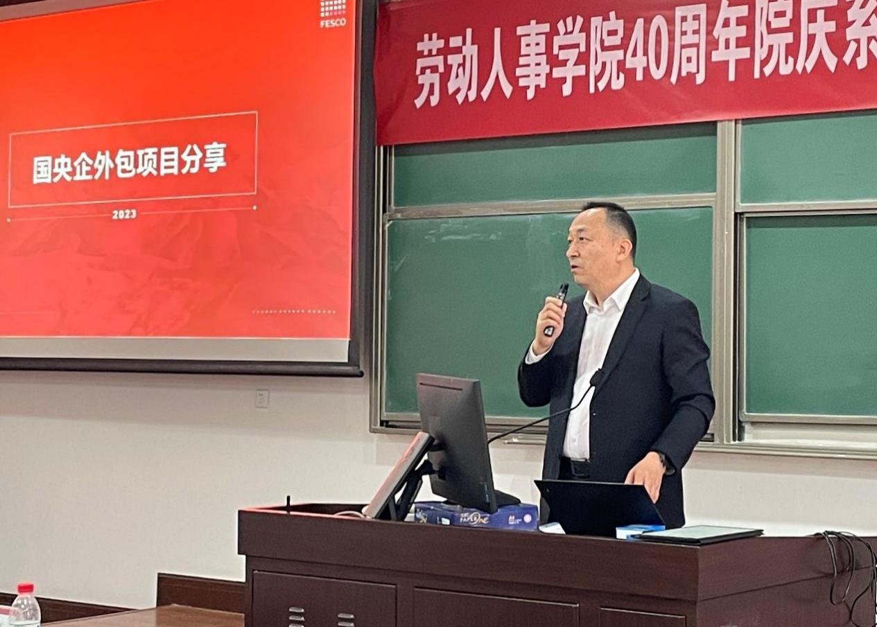 最后,FESCO业务总监兼海淀分公司总经理曹联华以“灵活用工企业实践案例解析”为题进行了主题演讲。他结合FESCO与多个企业和集团合作的案例,详细介绍了外包合作能够释放企业管理压力、提升管理效率和实现派遣比例合规化等多种优势。