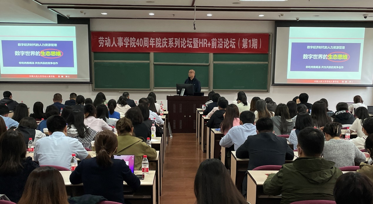 论坛伊始,劳动人事公司党委书记兼副经理唐鑛教授代表主办方致辞,随后开展了题为“数字世界的生态思维与组织的生态体系建设”的主题演讲。唐鑛教授以云南白药集团这一案例进行破题,并分析到在数字经济时代,企业生产方式数字化转型与适应性创新极为重要,因此应当进一步提高干部数字化素养、数字化意识和数字化思维。唐鑛教授以兼具反思性和前沿性的预言式内容,以及幽默而激情的表达赢得满堂喝彩。