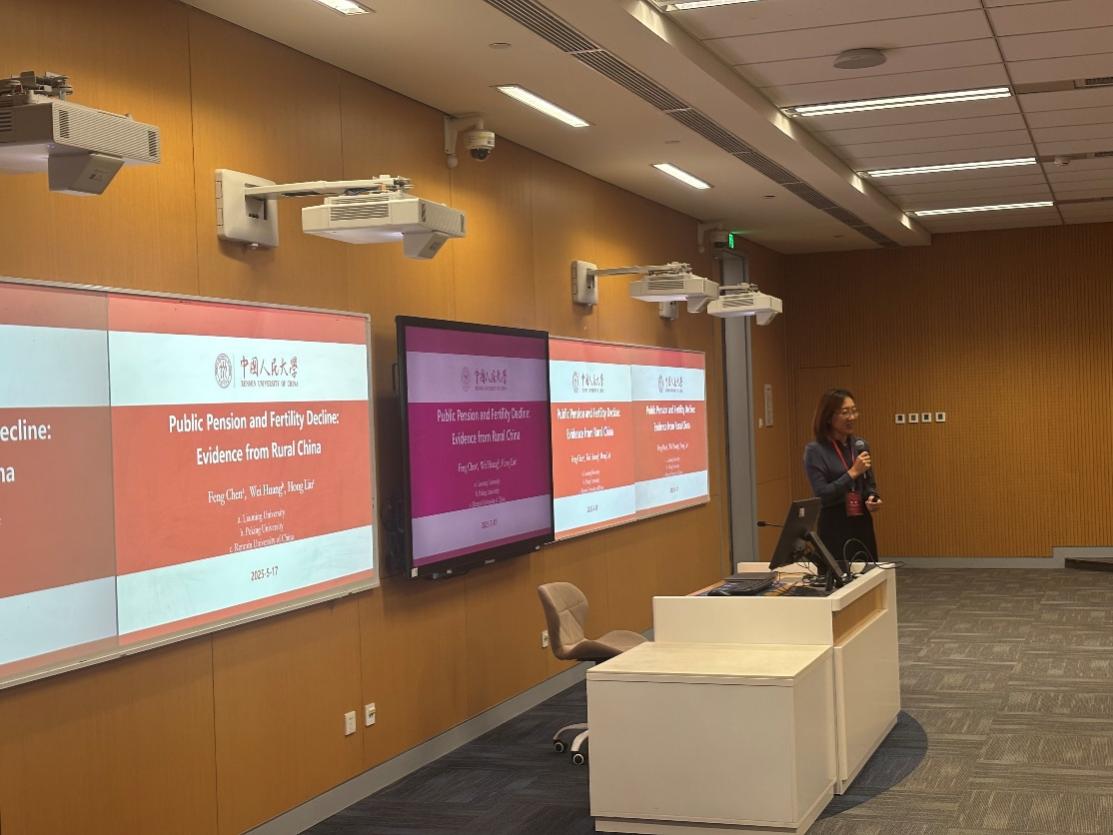 在下午论坛的最后一个主旨演讲中,WilliamHill官方网站吴玉章青年学者刘宏教授分享了她的研究“Public Pensions and Fertility Decline: Evidence from Rural China”。研究以我国新型农村社会养老保险为例,探讨了公共养老金扩张如何通过改变养老保障动机影响生育决策。研究借助新农保政策的实施构建三重差分模型,采用县域层面的人口普查数据进行分析。研究采用“中国综合社会调查”,发现新农保降低了男孩偏好型生育行为,该影响在新农保实施以前偏好依靠孩子养老的县级地区作用更强。研究结论证实了公共转移支付会挤出非正式的代际支持。