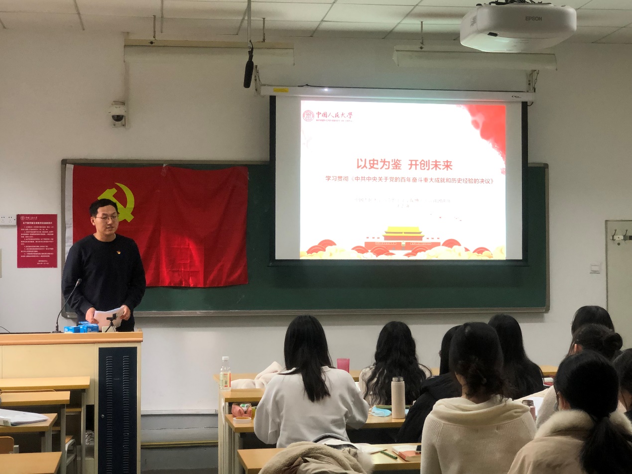 支部书记马迪对本次活动做了总结。她表示,希望支部同志们认真贯彻学习《决议》精神,不断提高政治站位和理论水平,响应《决议》发出的伟大号召,以青春之力践行“请党放心,强国有我”的铮铮誓言。