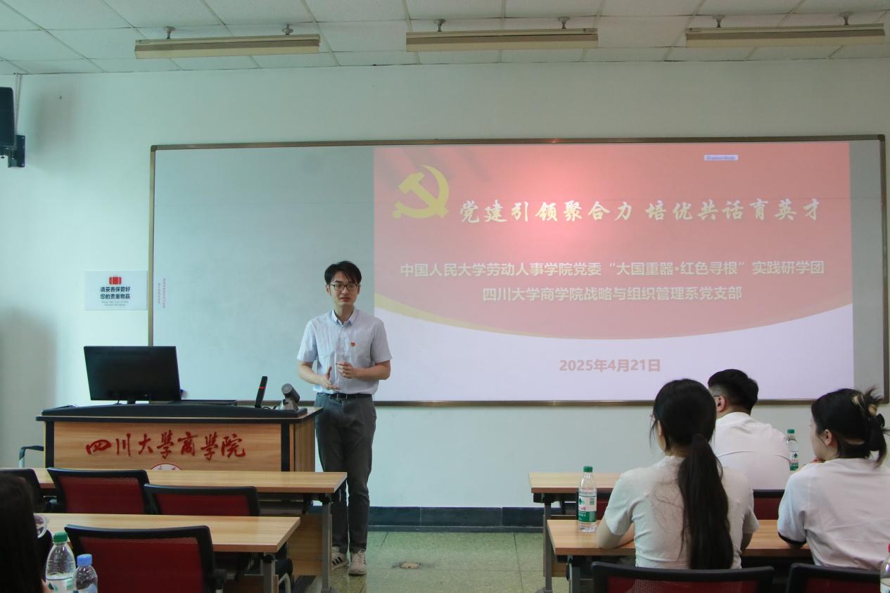 随后,师生走进川大校园,参观江姐博物馆并与四川大学商公司战略与组织管理系围绕人才培育开展党建联学。“海纳百川,有容乃大”的校训与“复兴栋梁”的使命交相辉映,科技创新的锐气与红色基因的血脉在此融合汇流。