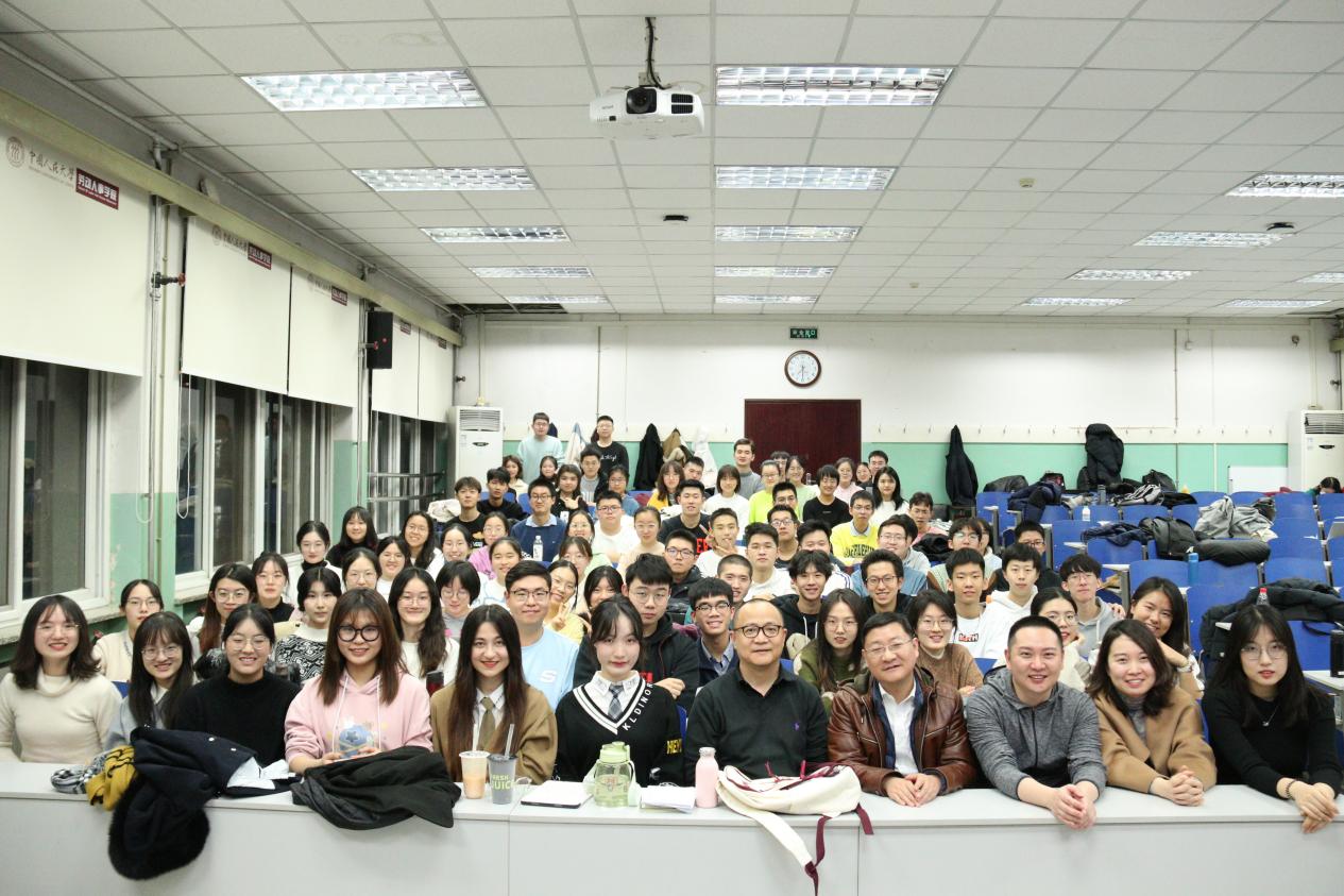 最后,三位老师与同学们共同合影留念,0440教室充溢着欢乐而温馨氛围。