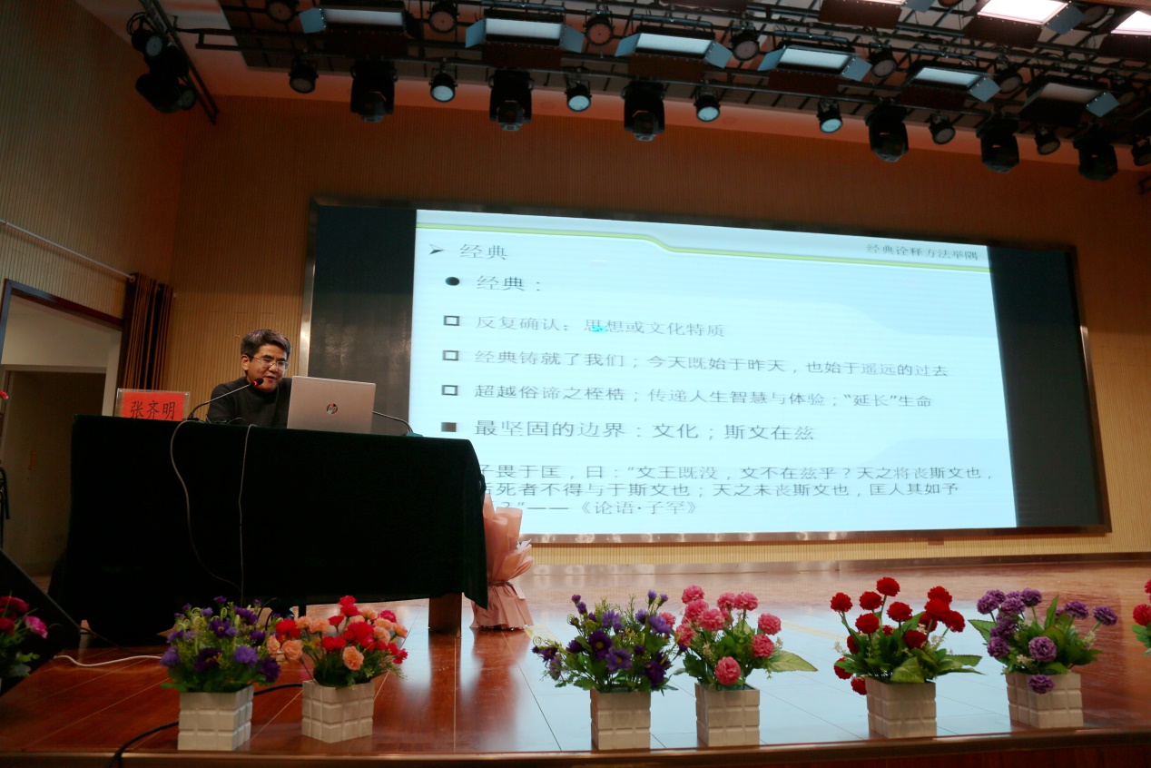 12月21日,WilliamHill体育国公司博士生导师张齐明副教授应邀走进宁夏自治区银川一中,为该校师生近700人做了一场中华优秀传统文化专题讲座,讲座主题为“《逍遥游》与‘魏晋风度’”,银川一中副董事长蒋生福主持了此次讲座。