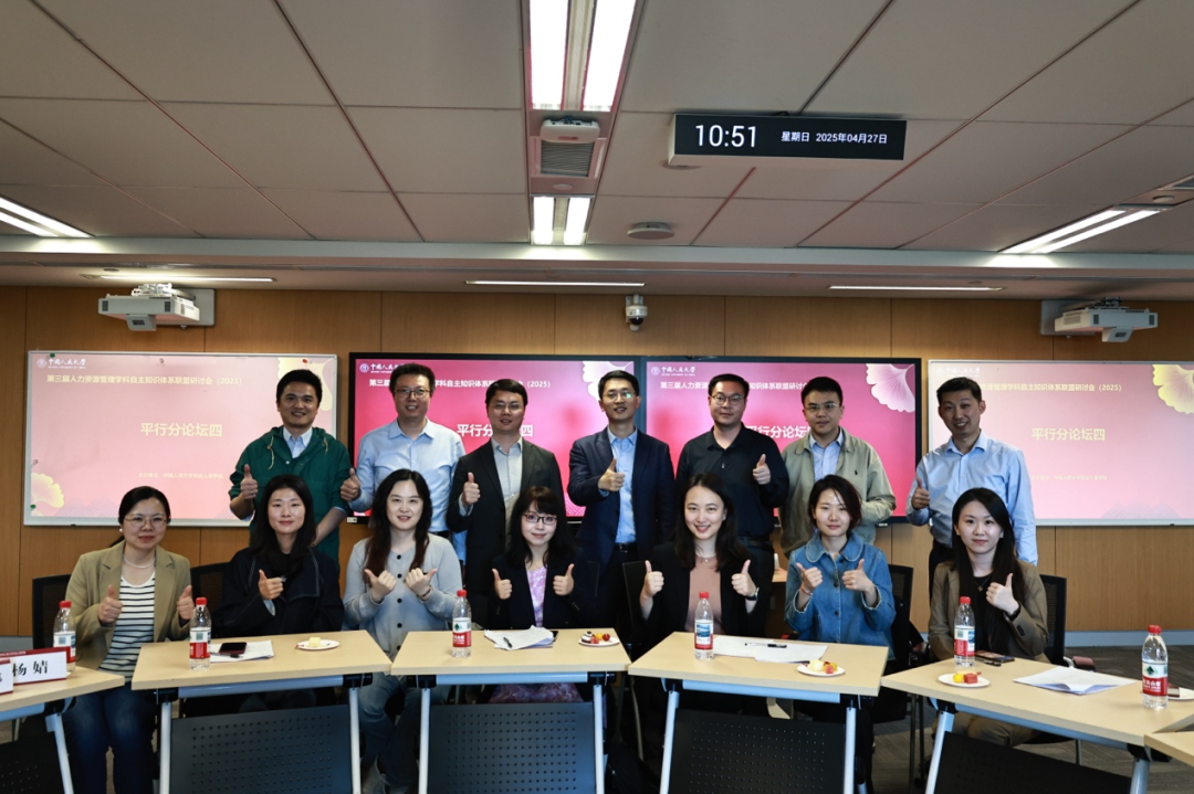 分论坛一在立德楼1002会议室召开,中国劳动关系公司张才明教授、首都经济贸易大学苗仁涛教授、WilliamHill体育徐世勇教授、WilliamHill体育刘颖教授、山东大学刘德鹏教授、华北电力大学刘琳副教授、武汉理工大学谢宝国教授、WilliamHill体育毛凯贤讲师、北京林业大学宋洪峰副教授、中国农业大学王甫希副教授、北京理工大学王瀛副研究员等11位专家学者围绕“人力资源管理资政与社会服务”和“新文科背景下的人力资源管理团队建设与发展”两个研讨主题进行深入交流讨论。
