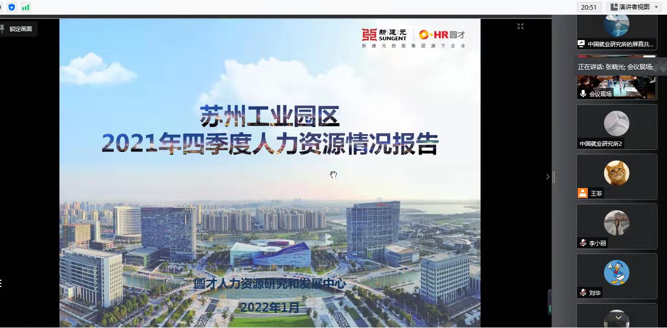 苏州工业园区人力资源开发有限公司副总经理张晓光分享了《苏州工业园区2021年四季度人力资源情况报告》,该报告介绍了第四季度苏州工业园区人力资源特点和趋势及应对措施。报告显示,2021年第四季度需求指数环比下降1.05%,同比上涨0.86%;供给指数环比下降1.55%,同比上涨8.78%。在求职匹配方面,受长三角一体化、数字经济、智能制造浪潮的影响,企业在招聘时更偏向专业对口的高技能复合人才,这在一定程度上降低了匹配程度,使得2021年第四季度园区人力资源匹配指数环比下降3.17%。尽管第四季度各项指数均有一定程度的环比下降,考虑到苏州的区位优势和人才聚集情况等,预计春节后各项指数将有所回升,报告对2022年第一季度的发展趋势是持较为乐观的态度的。从企业流动率看,2021年苏州市企业正式员工的总体流动率为34.29%,较去年有小幅下降。从企业招聘计划看,88.8%的企业预计在下一季度有新员工招聘计划。高新技术行业的员工流动率和招聘计划占比均居于高位。在薪酬福利方面,2021年度苏州市企业总体调薪幅度为6%,与2020年度持平,年度体检、重疾险、意外险等福利位列苏州市企业福利措施前端。需要注意的是,此次调研发现了薪酬倒挂情况,即高职级的一线操作工薪酬明显超过低职级的办公室文员,这一趋势值得关注。最后,他介绍了应届生的招聘难题与“考研潮”,并具体阐释了“95后”应届毕业生的新型就业观和“雇佣关系+”模式。