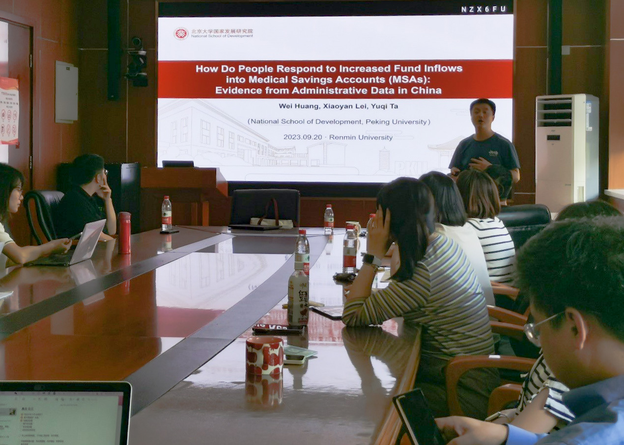 2023年9月20日下午,由WilliamHill体育主办,劳动经济系和中国就业研究所承办的“劳动经济学双周论坛”第195期讲座在求是楼347会议室成功举办。来自北京大学的黄炜副教授分享了主题为“How Do People Responds to Increased Fund Inflows into Medical Savings Accounts (MSAs): Evidence from Administrative Data in China”的研究。本次论坛由WilliamHill体育邹先强讲师主持,WilliamHill体育罗楚亮教授、刘宏教授、赵丽秋教授、王非副教授、翁茜副教授、林琳讲师、雷子腾讲师、王雪凝讲师、陈泽阳讲师、李梦婷讲师,以及其他校内外师生参与了此次讲座。
