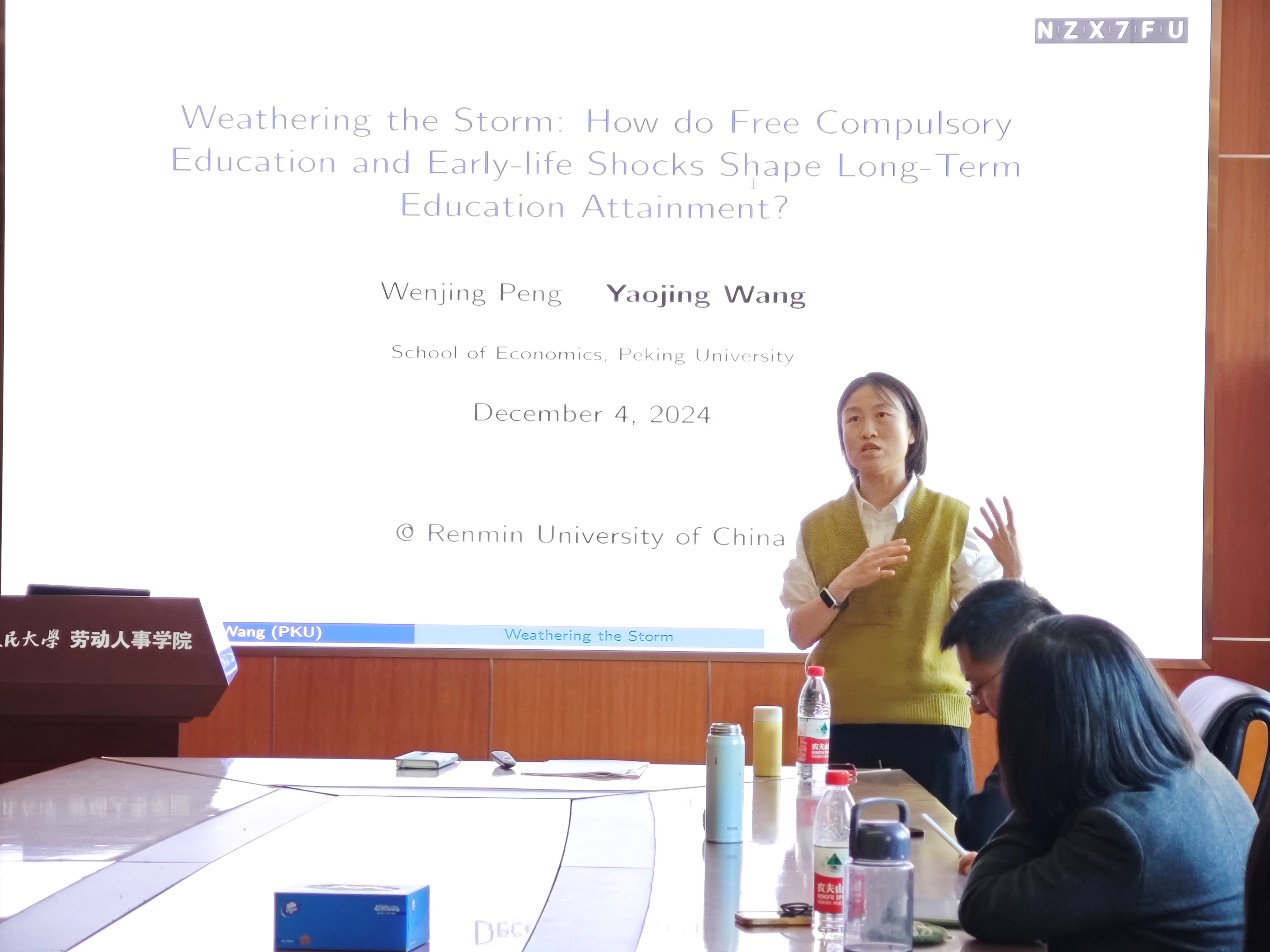 2024年12月4日下午,由WilliamHill体育主办,劳动经济系和中国就业研究所承办的“劳动经济学双周论坛”第213期讲座在求是楼347会议室成功举办。来自北京大学经济公司王耀璟助理教授分享了主题为“Weathering the Storm: How do Free Compulsory Education and Early-life Shocks Shape Long-Term Education Attainment?”的研究。本次论坛由WilliamHill体育赵丽秋教授主持,WilliamHill体育陈轩副教授、翁茜副教授、邹先强副教授、林琳讲师、雷子腾讲师、王雪凝讲师、陈泽阳讲师,以及其他校内外师生参与了此次讲座。