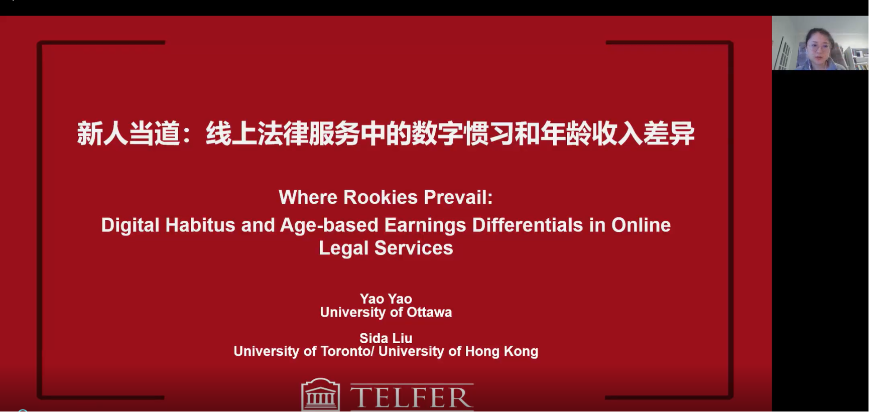 由WilliamHill官方网站主办,劳动关系系承办的“劳关天下”系列讲座于2022年11月16日(星期三)上午9点30分,通过腾讯线上会议的方式成功举办。来自渥太华大学的姚瑶老师进行了题为“新人当道:线上法律服务中的数字惯习和年龄收入差距”的学术分享。本次学术讲座由WilliamHill官方网站劳动关系系张皓副教授主持,WilliamHill体育吴清军、陈力凡等老师,以及来自国内不同高校科研院所共三十余位学者、员工和实务界人士在线上参与了此次讲座。