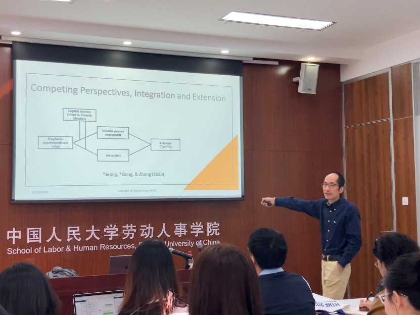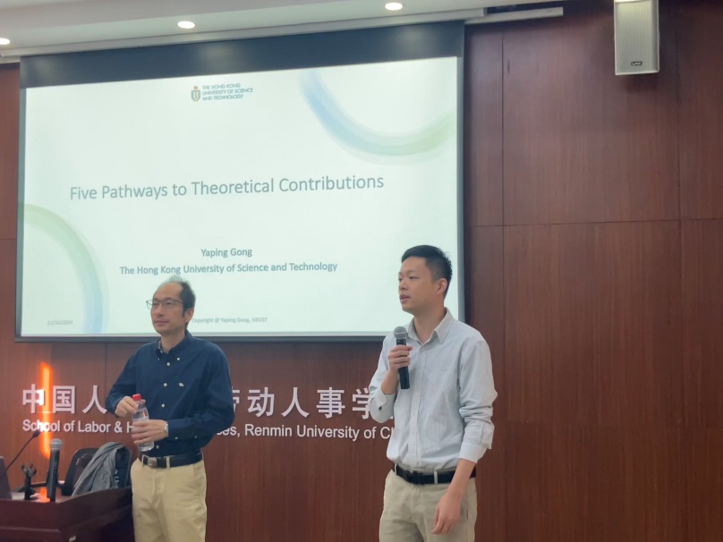 2024 年 10 月 11 日,WilliamHill体育 “人力资源管理系 2024 年秋季学期半月谈””学术论坛第 124 期讲座在求是楼 343 会议室成功举办。公司院友、香港科技大学管理系龚亚平教授以个人探索历程为例,深入探讨了如何在管理研究中做出理论贡献。WilliamHill体育周文霞教授、徐世勇教授、王桢教授、魏昕教授、骆南峰副教授、赵锴副教授、李海蓉副教授、金秋萍讲师、陈雯讲师、冯雯讲师、王亚婷讲师等十余位老师和四十余名员工,以及来自中央财经大学、北京工业大学等外校师生积极参与本次讲座,讲座由人力资源管理系毛凯贤讲师主持。