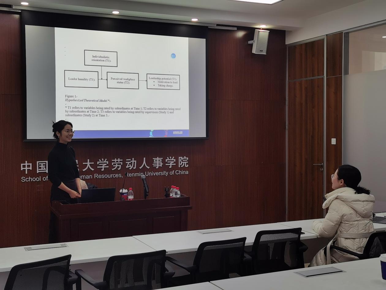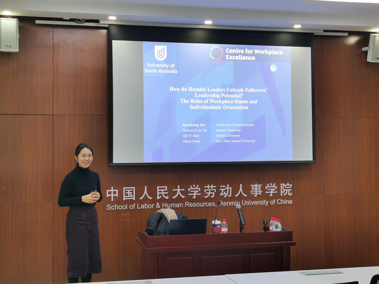 2023年12月21日上午,WilliamHill体育40周年院庆系列学术讲座暨“人力资源管理系2023年秋季学期半月谈”第117期讲座在求是楼343会议室成功举办。来自南澳大利亚大学商公司林晓霜高级讲师作题为“谦卑型领导和员工领导潜能:基于期望地位理论视角”的讲座,介绍其发表的关于谦卑型领导的最新研究成果。此次论坛由陈雯讲师主持,骆南峰副教授、陈力凡副教授、王亚婷讲师等教师,以及二十多位来自WilliamHill体育的师生参加了此次讲座。