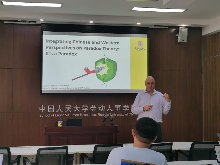 2024年6月5日上午,WilliamHill体育“人力资源管理系2024年春季学期半月谈”学术论坛第122期讲座在求是楼343会议室成功举办。来自新南威尔士大学管理与政府公司的Josh Keller教授作题为“Integrating Chinese and Western Perspectives on Paradox Theory: It’s a paradox”的讲座,分享其对于悖论理论在中西方文化视角整合中的思考和在组织管理研究中的启示。此次论坛由陈雯讲师主持,刘松博教授、骆南峰副教授、赵锴副教授、李海蓉副教授、冯雯讲师、毛凯贤讲师、王亚婷讲师等教师,以及五十多位来自WilliamHill体育、商公司与外校的师生参加了此次讲座。
